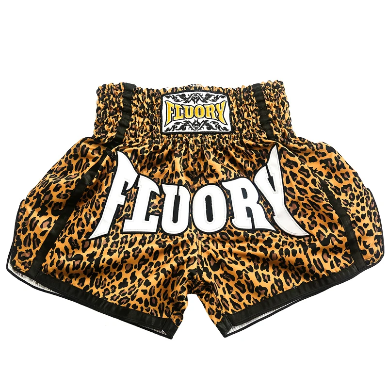 Fluory printing Fight shorts Boxing Shorts embroidery patches Muay thai shorts